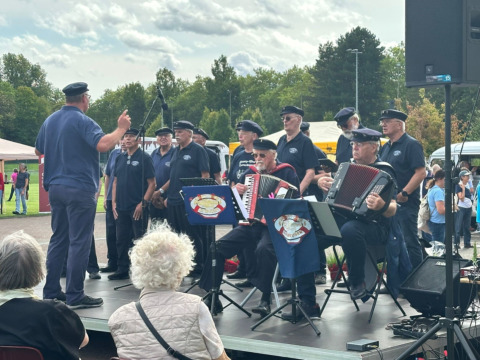 Ganze 2.800 € haben sie erspielt und ersungen: Die Shanty-Chöre aus Leverkusen und
